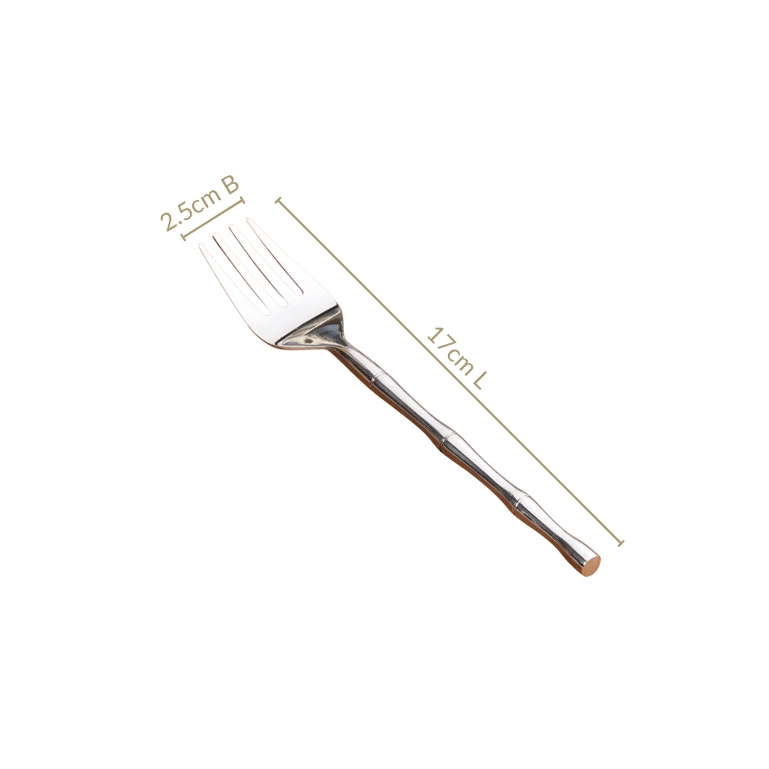 Benefits: Crafted from durable, food-safe stainless steel, these forks are resistant to rust and safe for everyday use. The sturdy build ensures long-term performance without compromising on comfort. The ergonomic bamboo-style handle not only enhances grip but also lends a distinct look to your cutlery collection. These sturdy forks are perfect for daily use or special dinners. Their smooth finish resists water spots and fingerprints, making post-meal cleanup a breeze. Whether used for formal gatherings or casual meals, this set adds functional elegance to every bite.