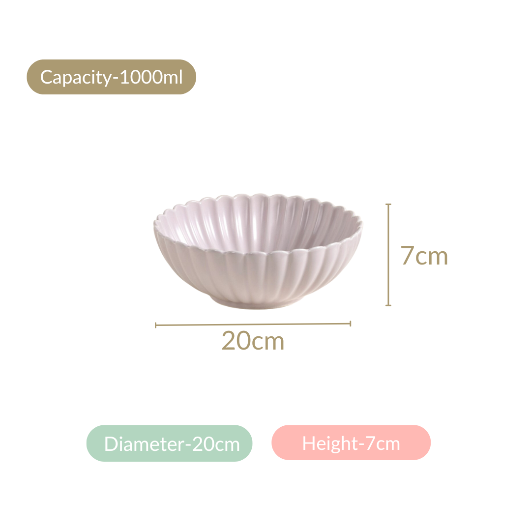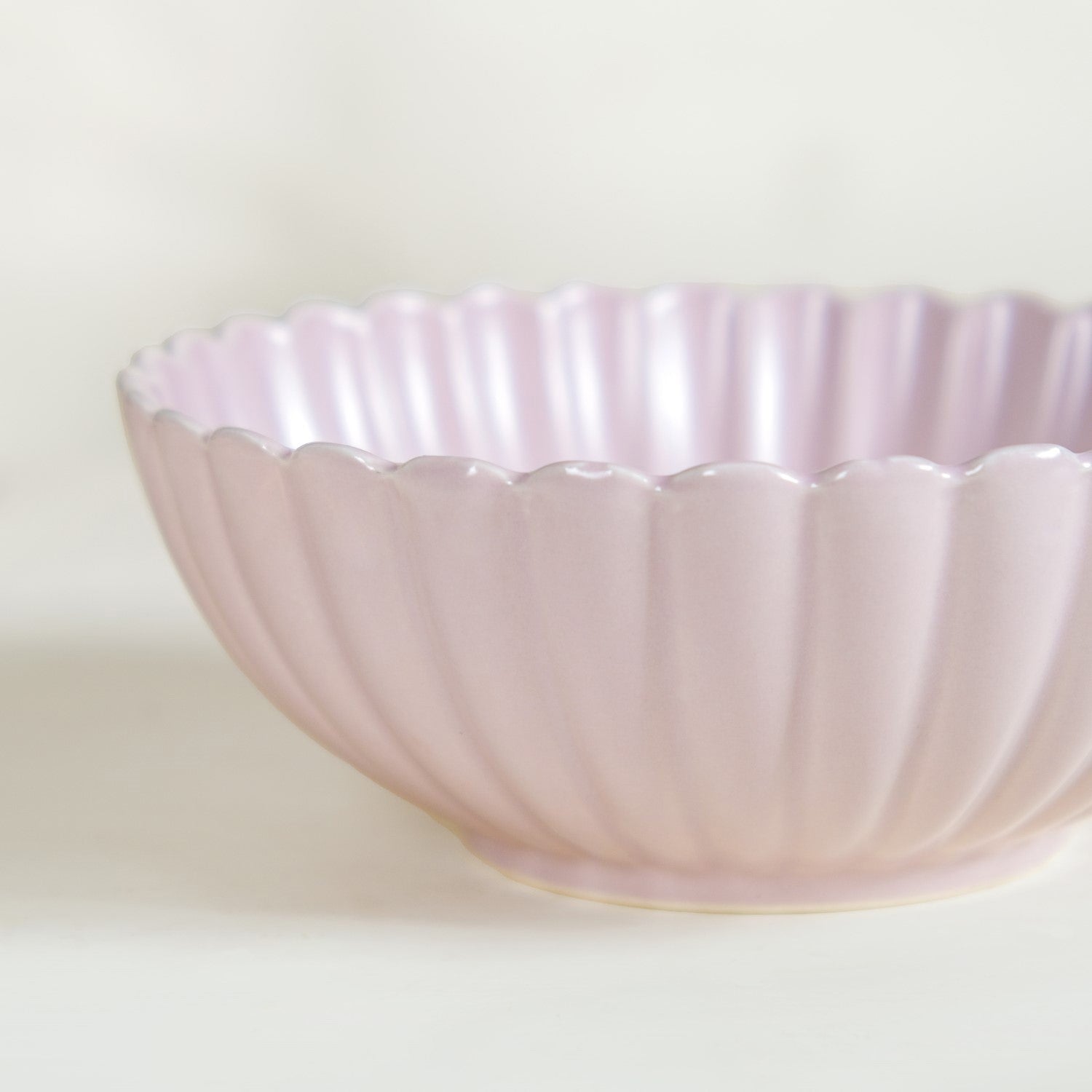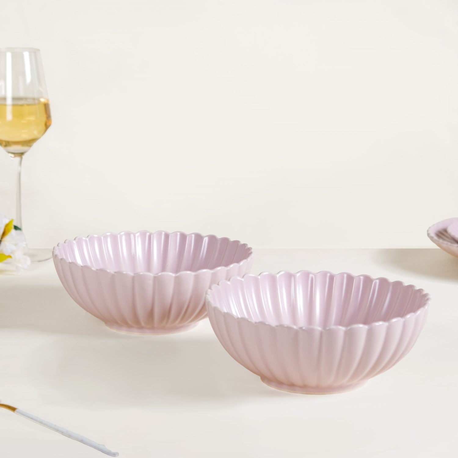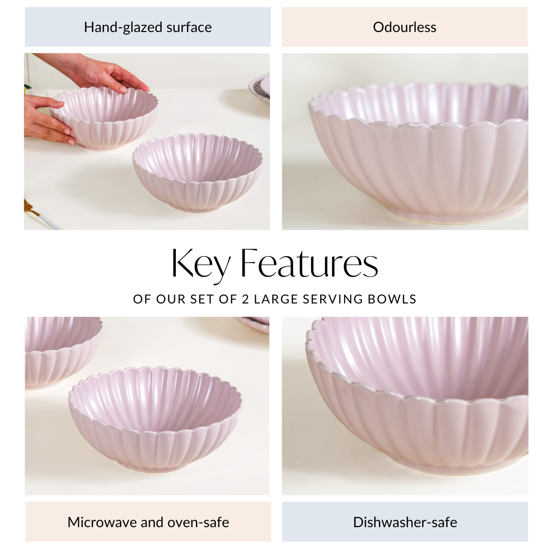 Add some magic to your tablescape with our alluring lilac-hued ceramic bowls. Crafted from premium-quality odourless ceramic material, the set of 2 serving bowls has been expertly fashioned in intriguing clam shapes that create visual interest. The non-toxic and BPA-free construction assures high standards of food safety, putting your mind at ease. No need to reach out for extra dishes as the microwave-friendly design allows you to heat tasty dishes before serving. Apart from the convenient dishwasher-safe construction, the hand-glazed surface makes these ceramic serving bowls durable and easy to clean.