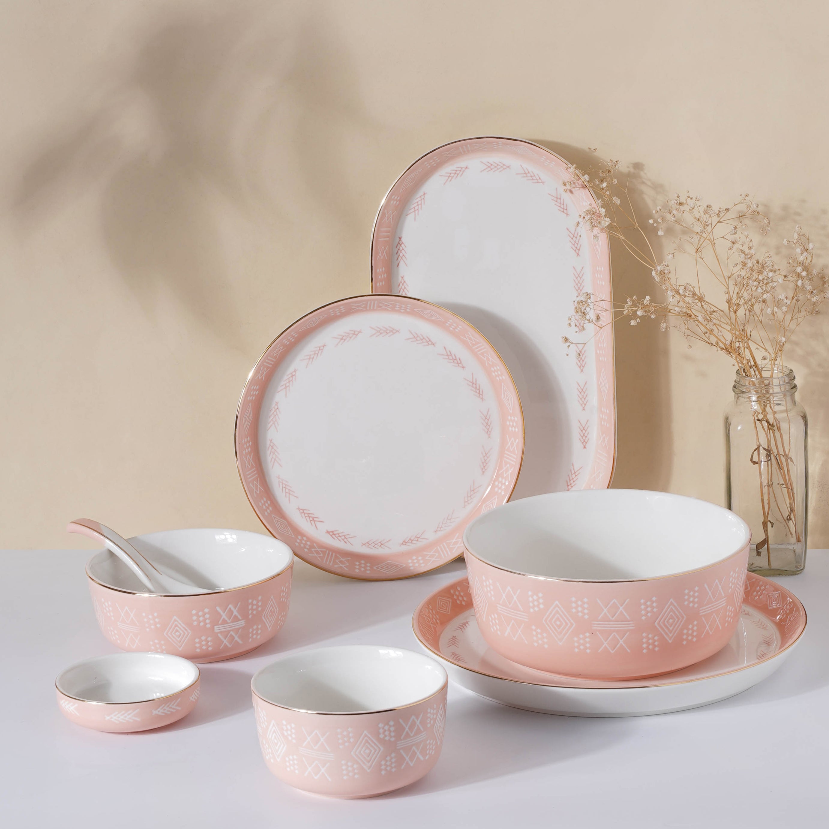 Appetizer plate with a white surface and gold lining that comes with a pink or grey textured border. The side plate has a slightly raised rim with an intricate design that makes the plate stand out. Use the ceramic appetizer plate as a side plate for serving breads with main course, as a starter plate, as a snack plate or as a plate to serve buns along with a soup serving. The white appetizer plates are capable of elevating any table setting and food that is served in it. The white plates from the Azo collection are not microwave safe.