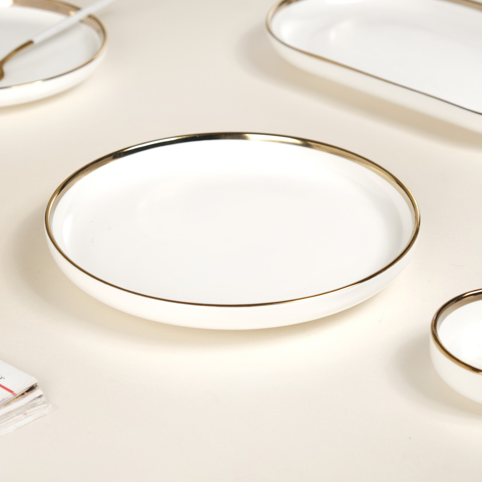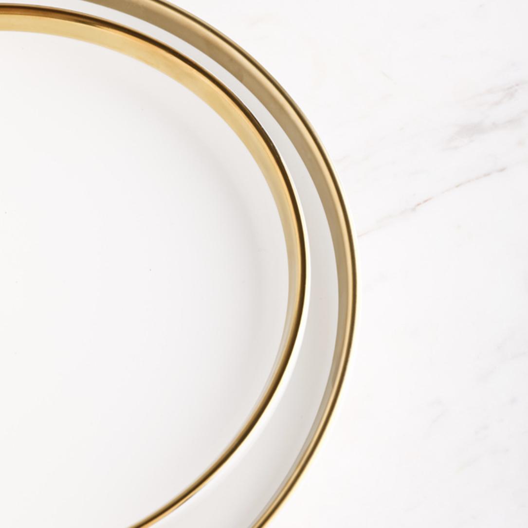 Vera whites are a perfect blend of novelty and modern style, catered to serve you the best of ceramic dinner ware. The elaborate assortment includes Vera white deep plates, side plates, dessert plates, long plates, salad plates, and dinner plates. One can easily pick up any according to the requirement, or can build a set from any occasion or formal events. The gold lining on the rim adds to the classic white colour of the Vera series, a charm that would leave the guests astonished and you as the great host/hostess. These plates can be gifted on the festivities of Diwali or Christmas, or in housewarming, anniversary, and wedding.