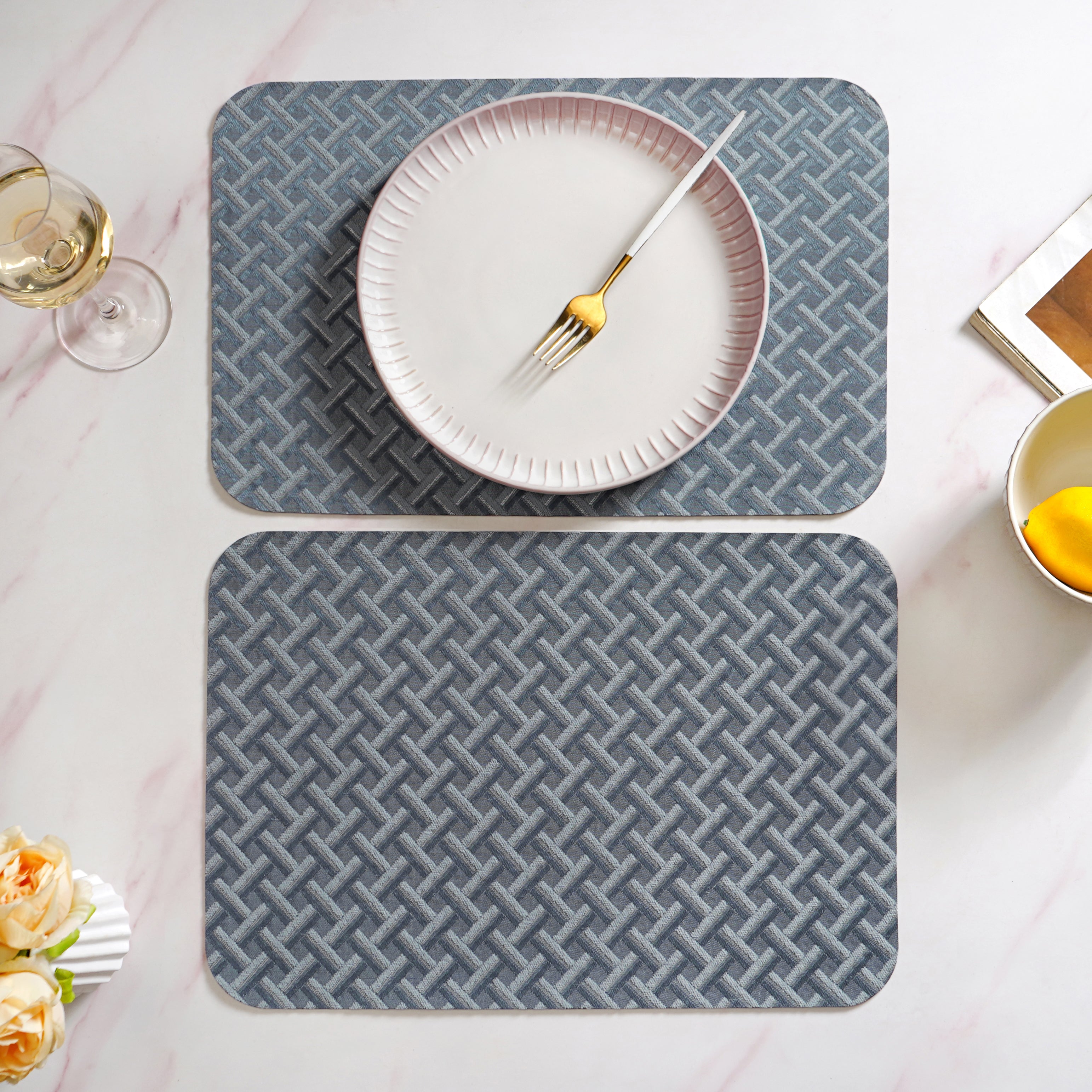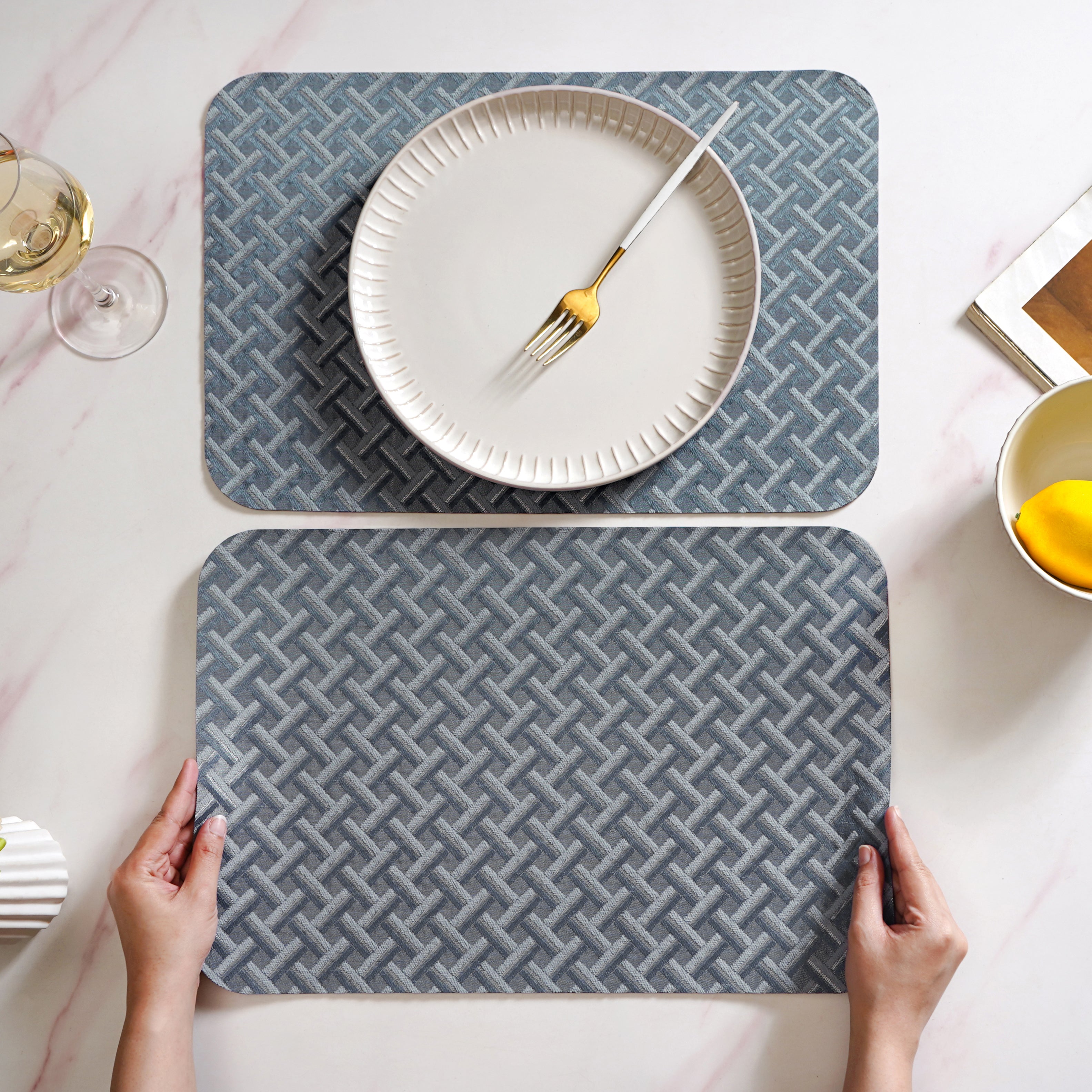 Design: This set of six rectangular placemats comes in a stylish wicker pattern with shades of steel blue and silver grey. Designed with traction dots at the back, the mats stay firmly in place while you serve or dine. The surface is textured, non-slip, and durable, making it ideal for daily use. Crafted for functionality as well as appearance, the mats are water-resistant, heat-resistant, and easy to clean. Whether used during meals or under decorative centrepieces, these dining table placemats strike the right balance of chic and strong.