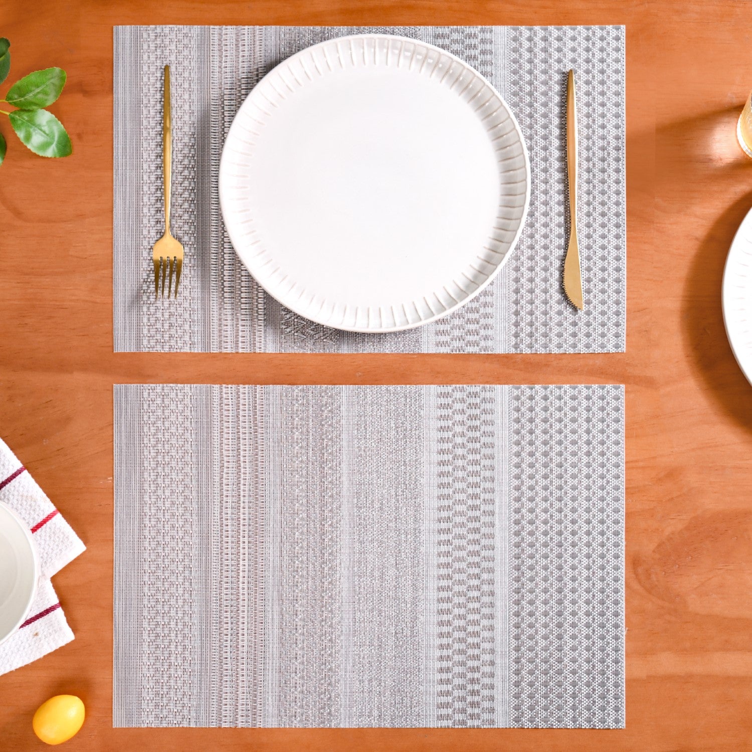 Turn everyday dining into an effortlessly elegant affair with this silver-toned placemat set that blends functionality with refined style. Whether you're entertaining guests or enjoying a quiet family meal, these mats bring a polished, modern edge to your table with minimal fuss.