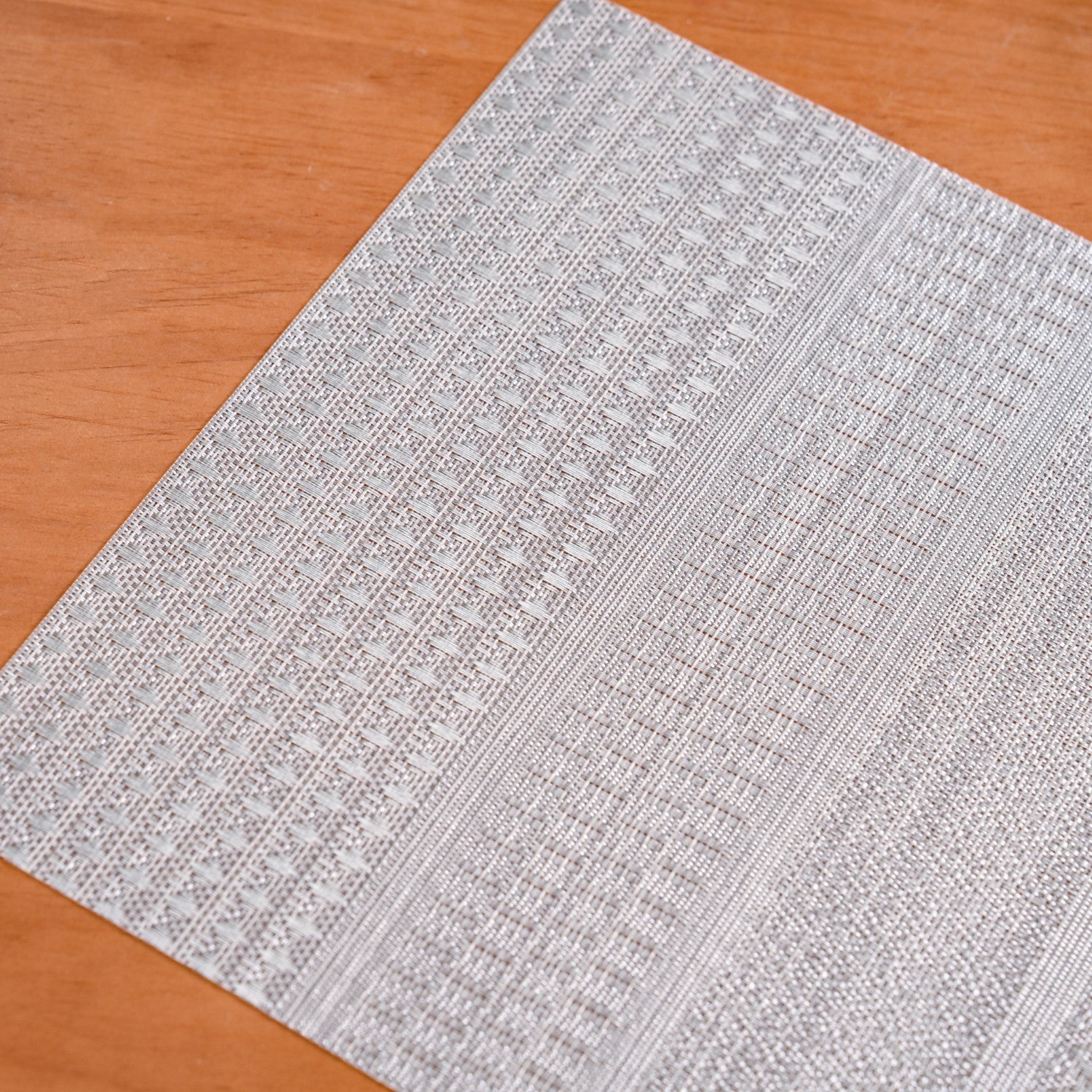 Design: Featuring a sleek, geometric pattern in an elegant silver tone, this placemat set adds a touch of sophistication to any dining table. Crafted from durable PVC, the mats are designed for long-lasting use and easy maintenance. The textured surface helps prevent slipping, keeping plates and cutlery securely in place. With a reversible design for added flexibility, the set of six is perfect for both daily meals and special gatherings, offering style and convenience in equal measure.